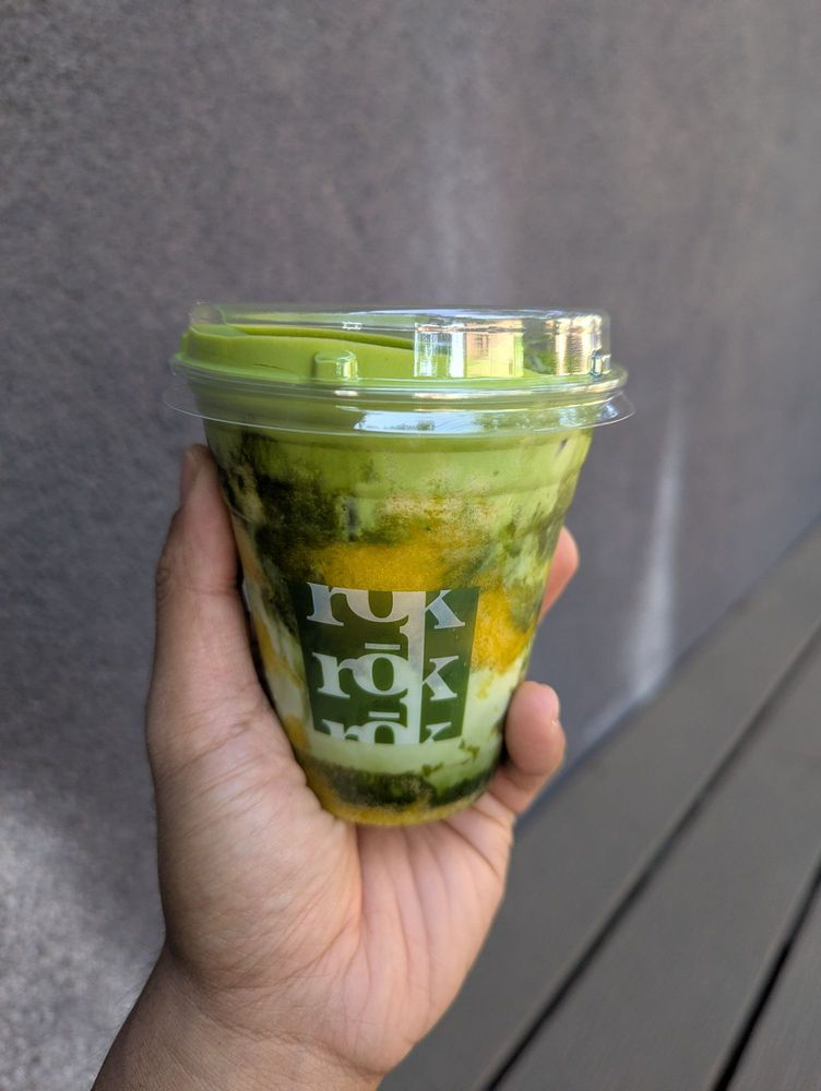 Mango Matcha at Rōk Coffee and Tea shows how creative modern cafés can be when combining traditional ingredients with fruit flavors. The drink brings together smooth ceremonial matcha and sweet mango in a refreshing and visually appealing way.